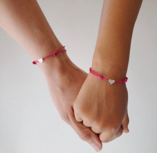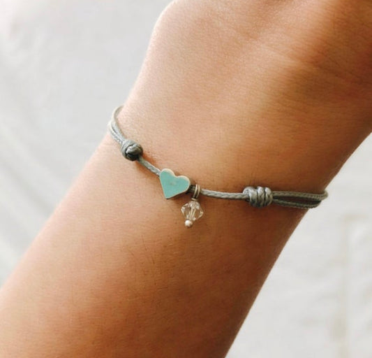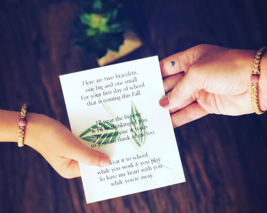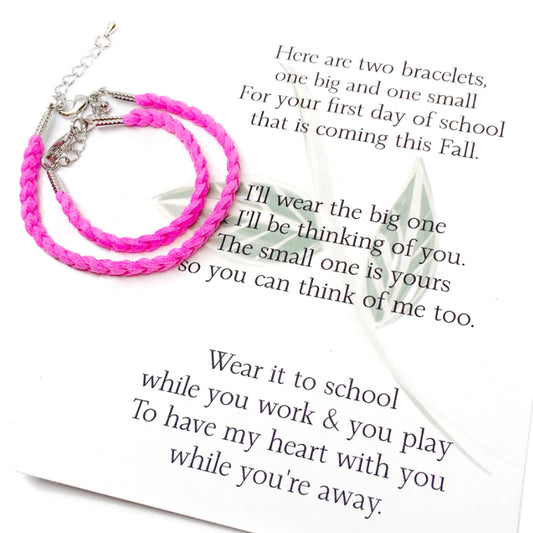 First Day of School Heart Charm Cord Bracelet Set with Poem