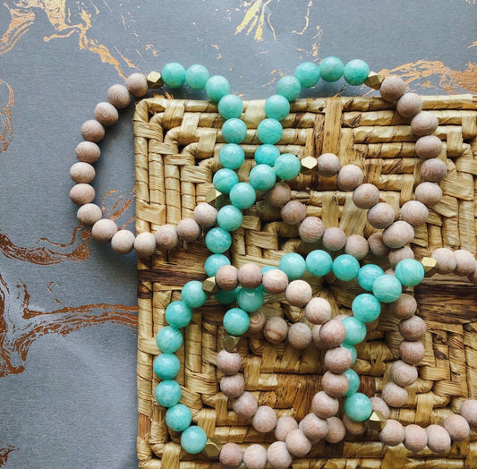 Aqua Amazonite Rose Wood Diffuser Bracelet